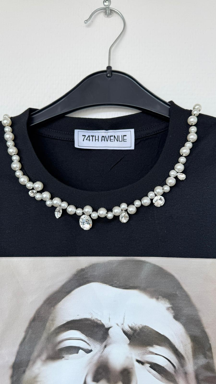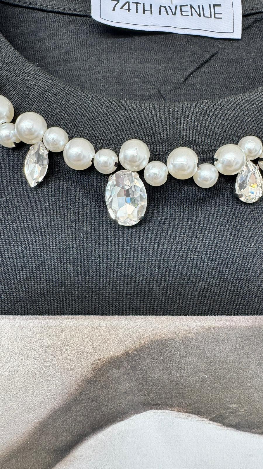 Crew neck with pearls and shiny details